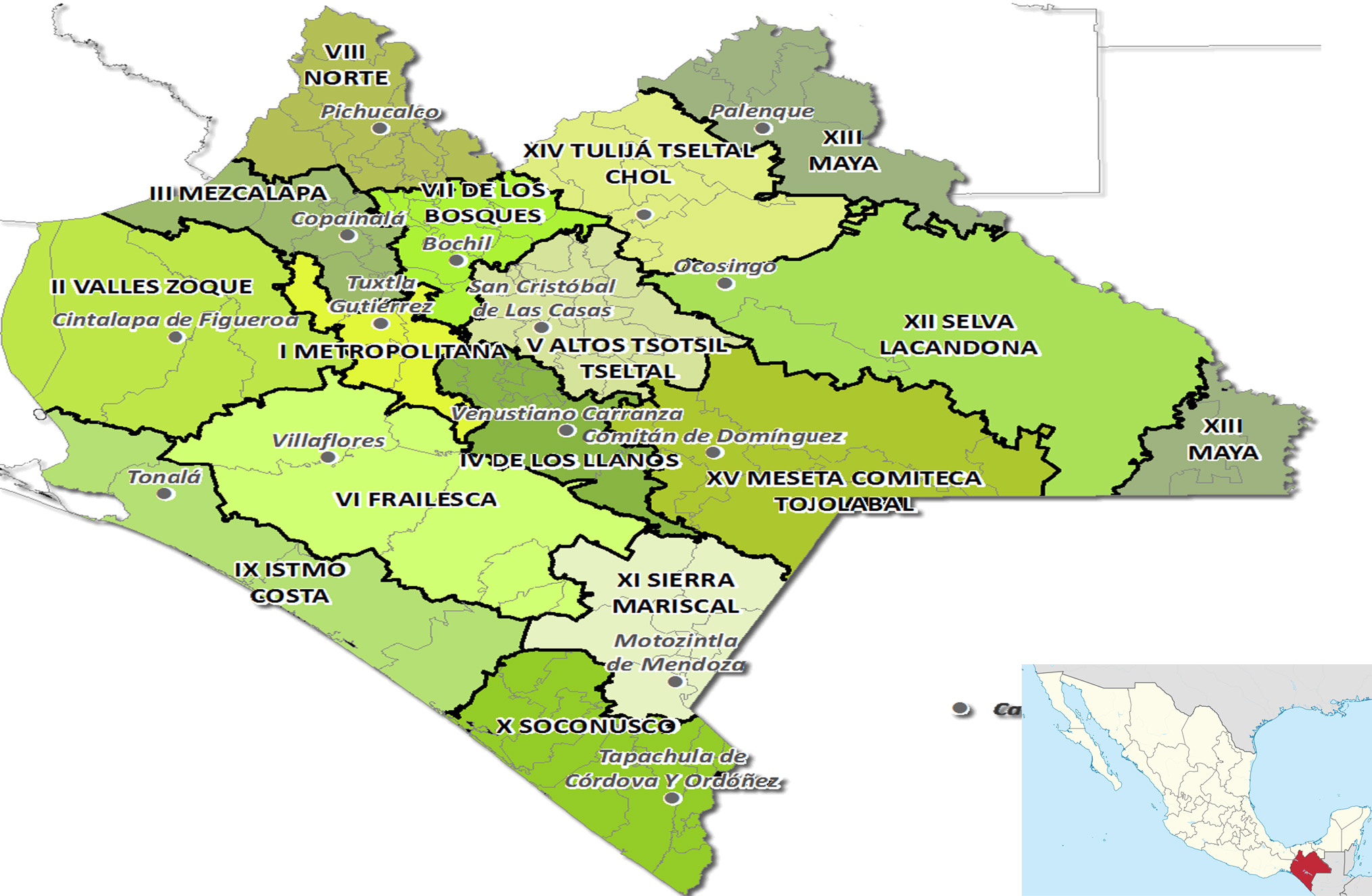 Chiapas es uno de los 32 estados federales que conforman México. Esta situado al Sureste, fronterizo con Guatemala.